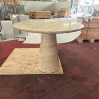 Modern Custom Design Pedra Bege Travertino Redonda Mesa De Jantar Flutted Mobiliário Ao Ar Livre Feito De Mármore Natural