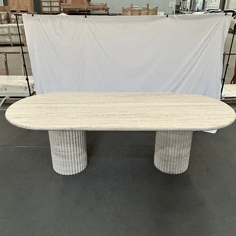 Table de salle à manger en travertin blanc de taille personnalisée Meubles en pierre Table de salle à manger Table de salle à manger en travertin en marbre ovale cannelé