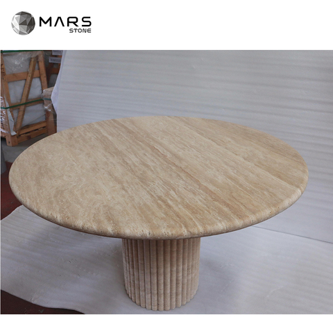 Meubles en pierre naturelle Table ronde en marbre beige mat Base cannelée Table de salle à manger en pierre de travertin